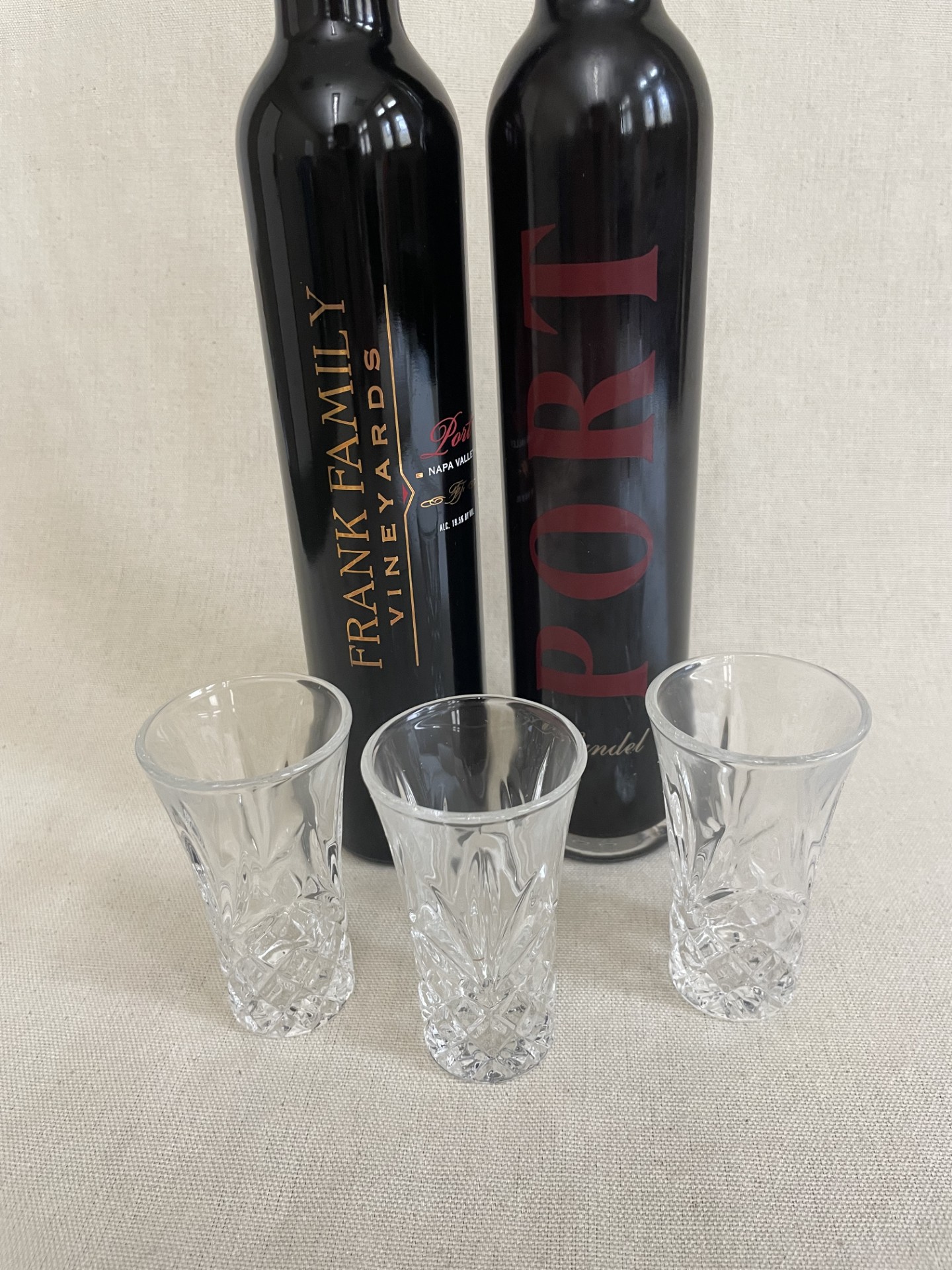 - Set of 3 crystal glasses perfect for savoring port wines and after dinner pontificating:-)